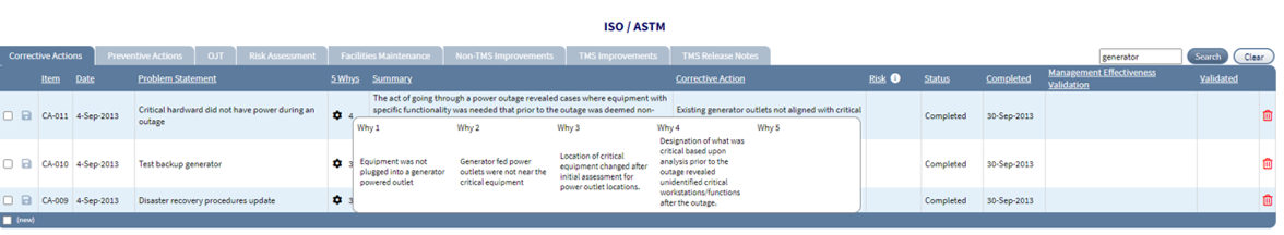 - Integrated CRM linked to ISO Corrective Actions if/when negative feedback requires a CA and Root Cause Analysis (5 Why Method).